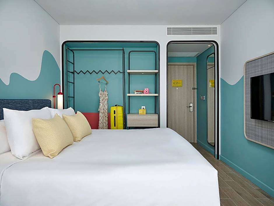 This family room's special feature is the fireplace. The spacious family room provides air conditioning, soundproof walls, a balcony with city views as well as a private bathroom featuring a shower. The unit offers 2 beds.
